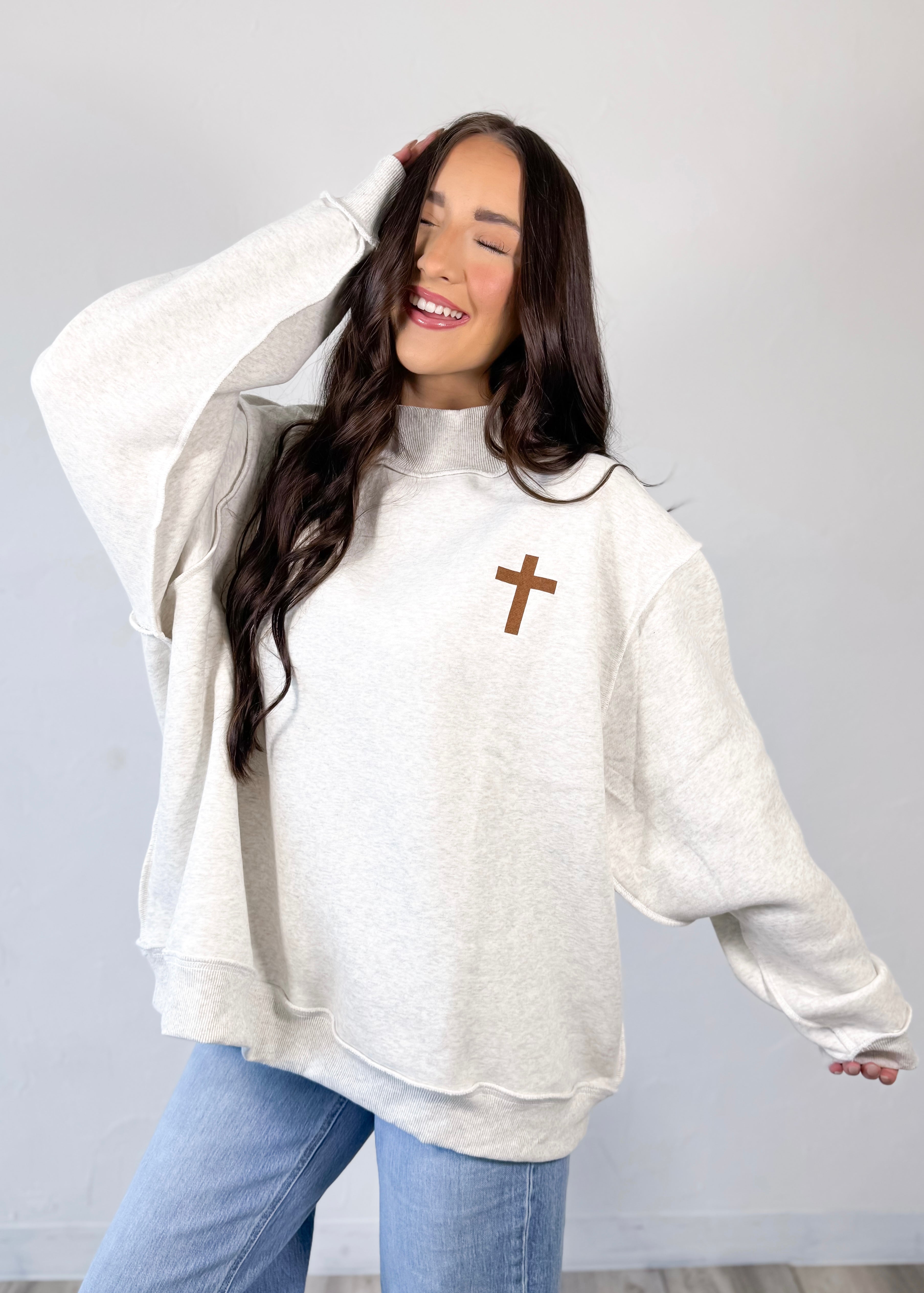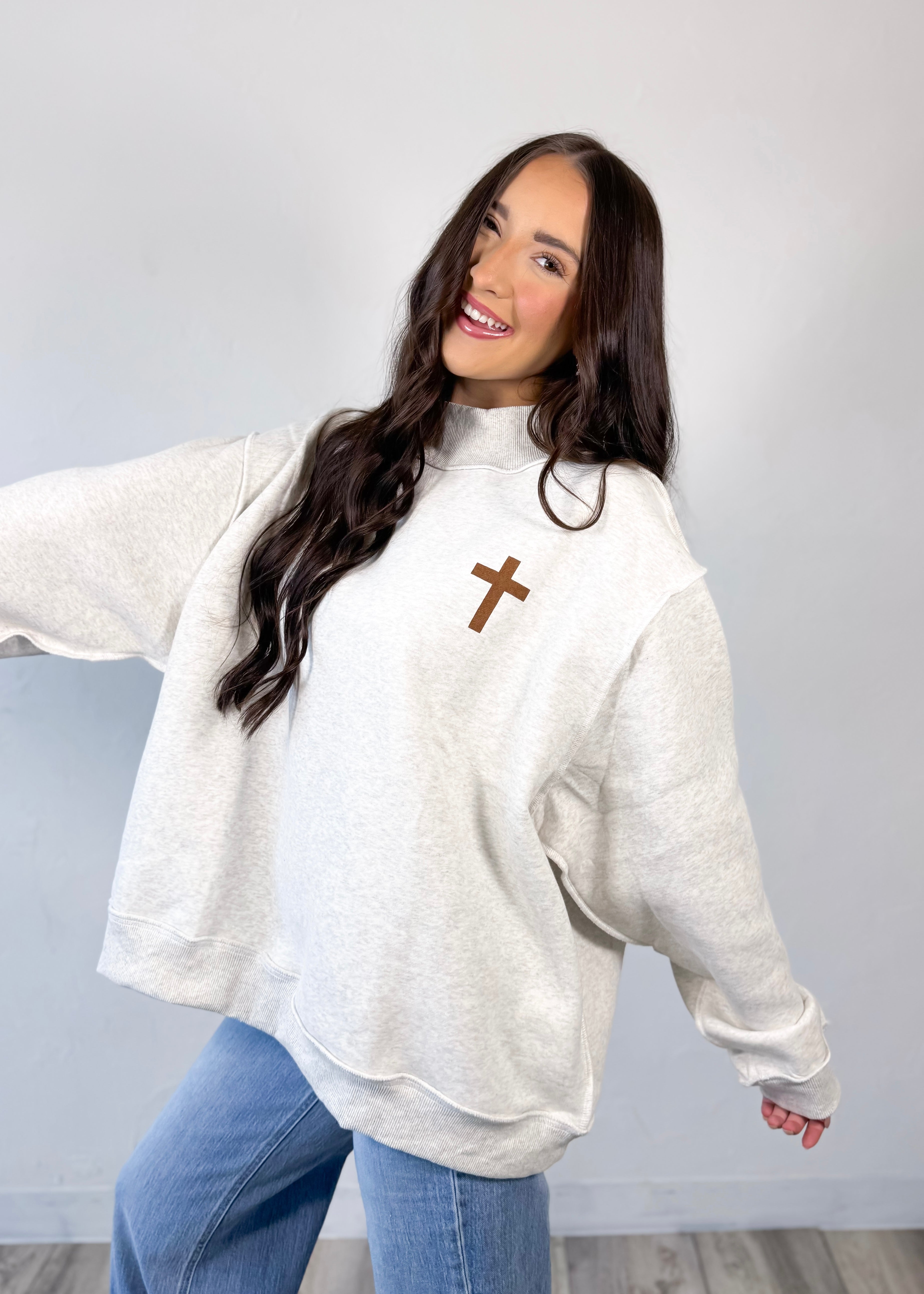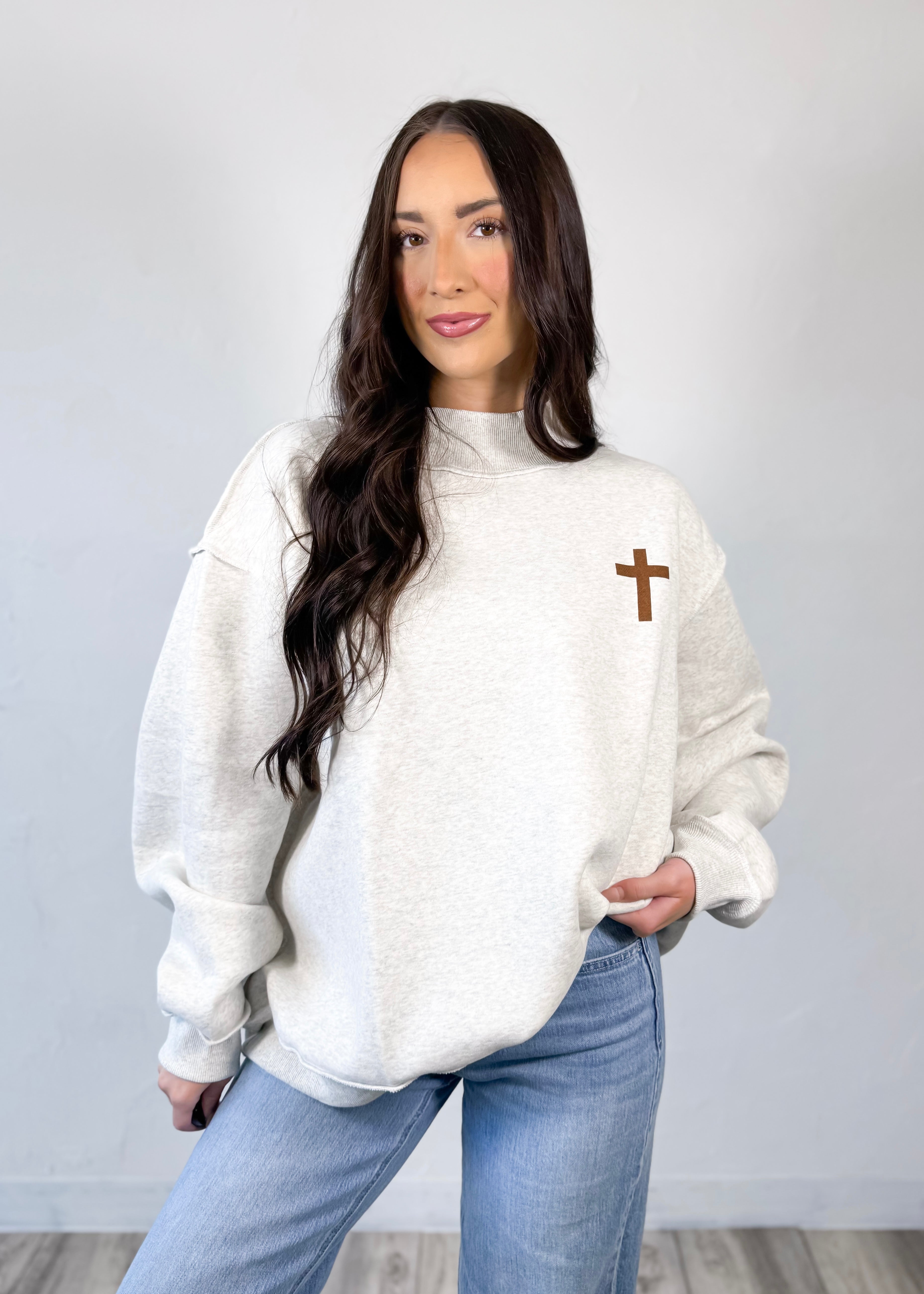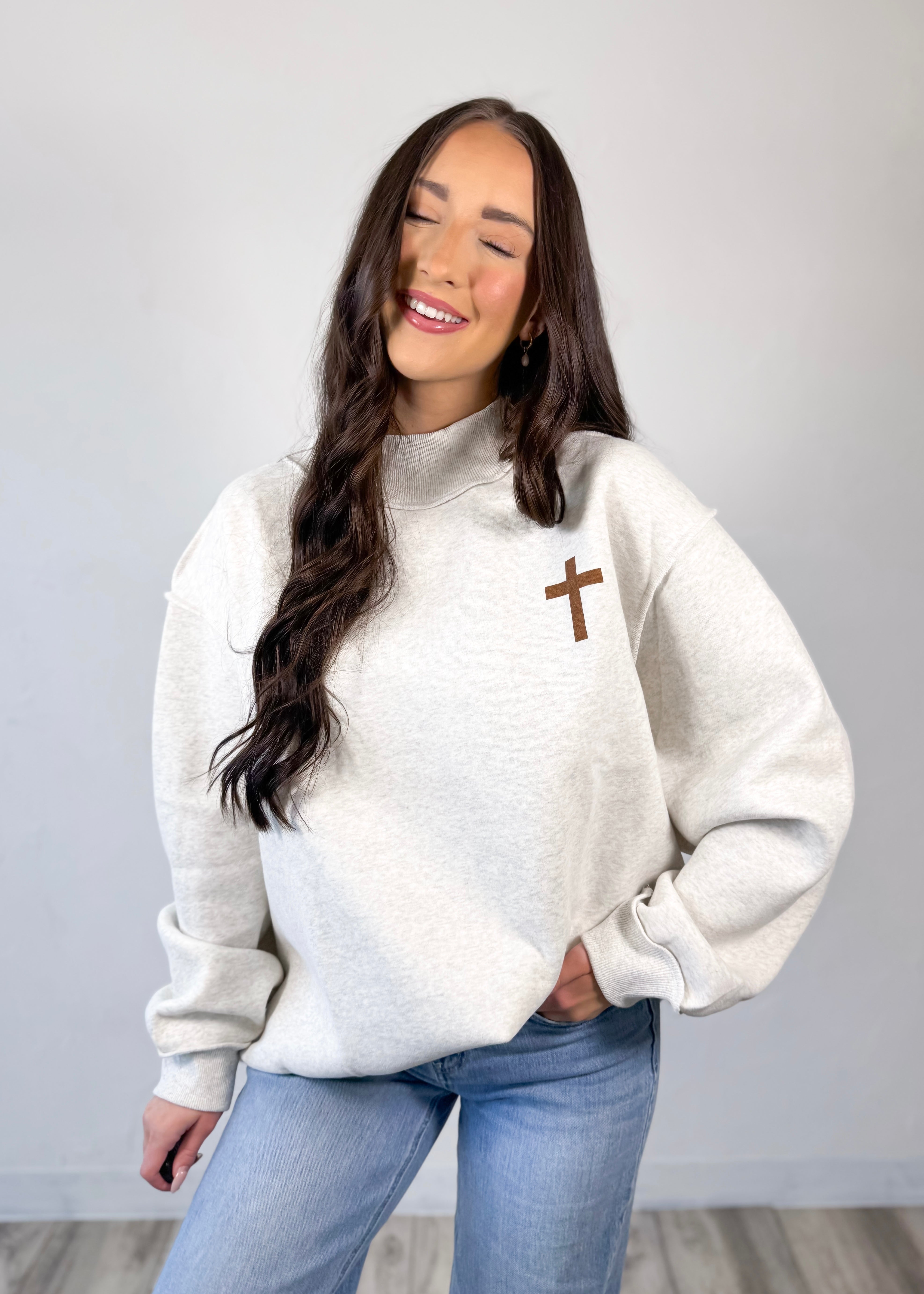 Made in the softest heather grey with a cozy, structured mockneck fit, this one is perfect for everyday wear while still sharing your faith in a subtle, stylish way. Dress it up with denim or keep it casual with leggings—it’s one of those easy pieces you’ll reach for again and again.