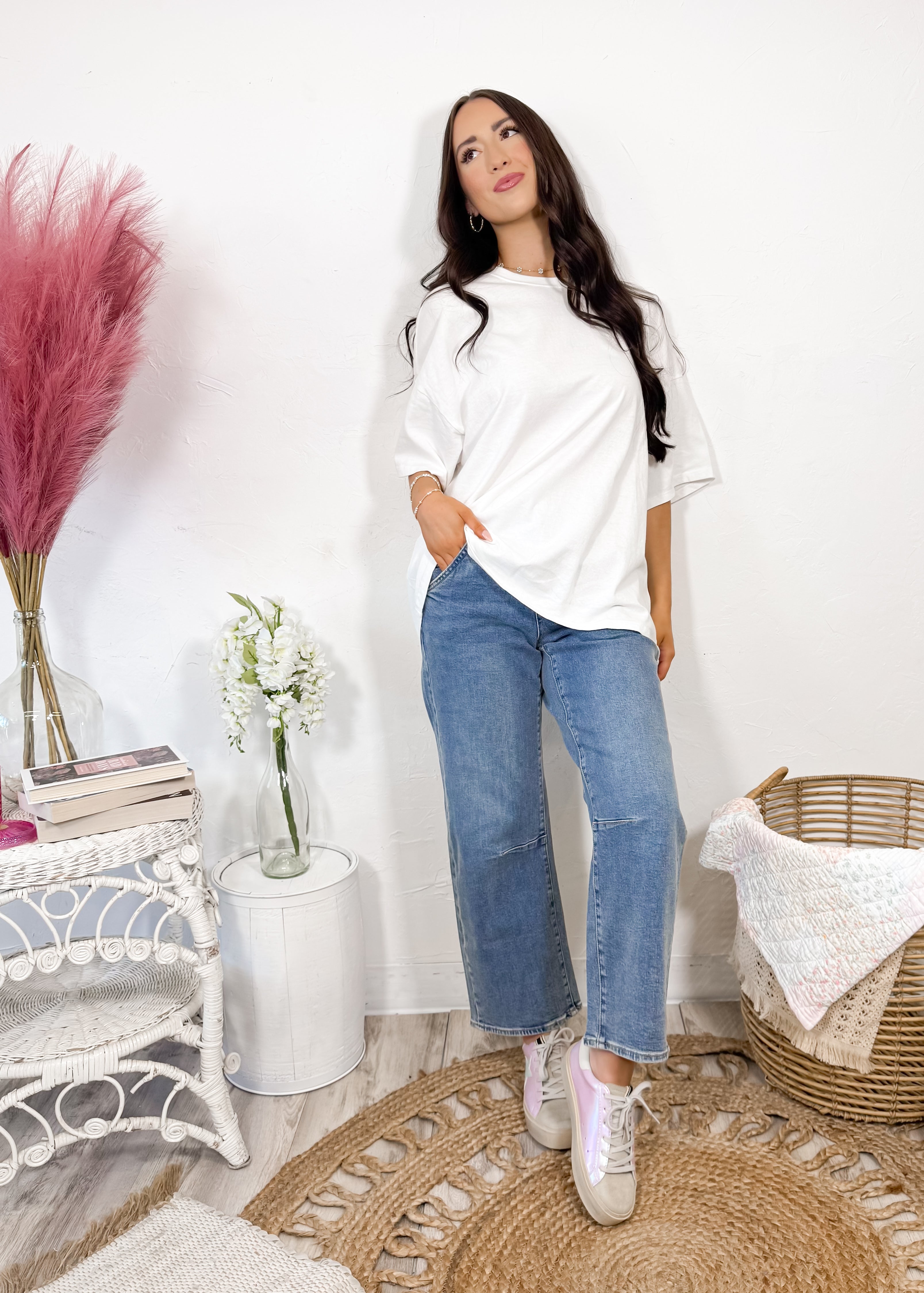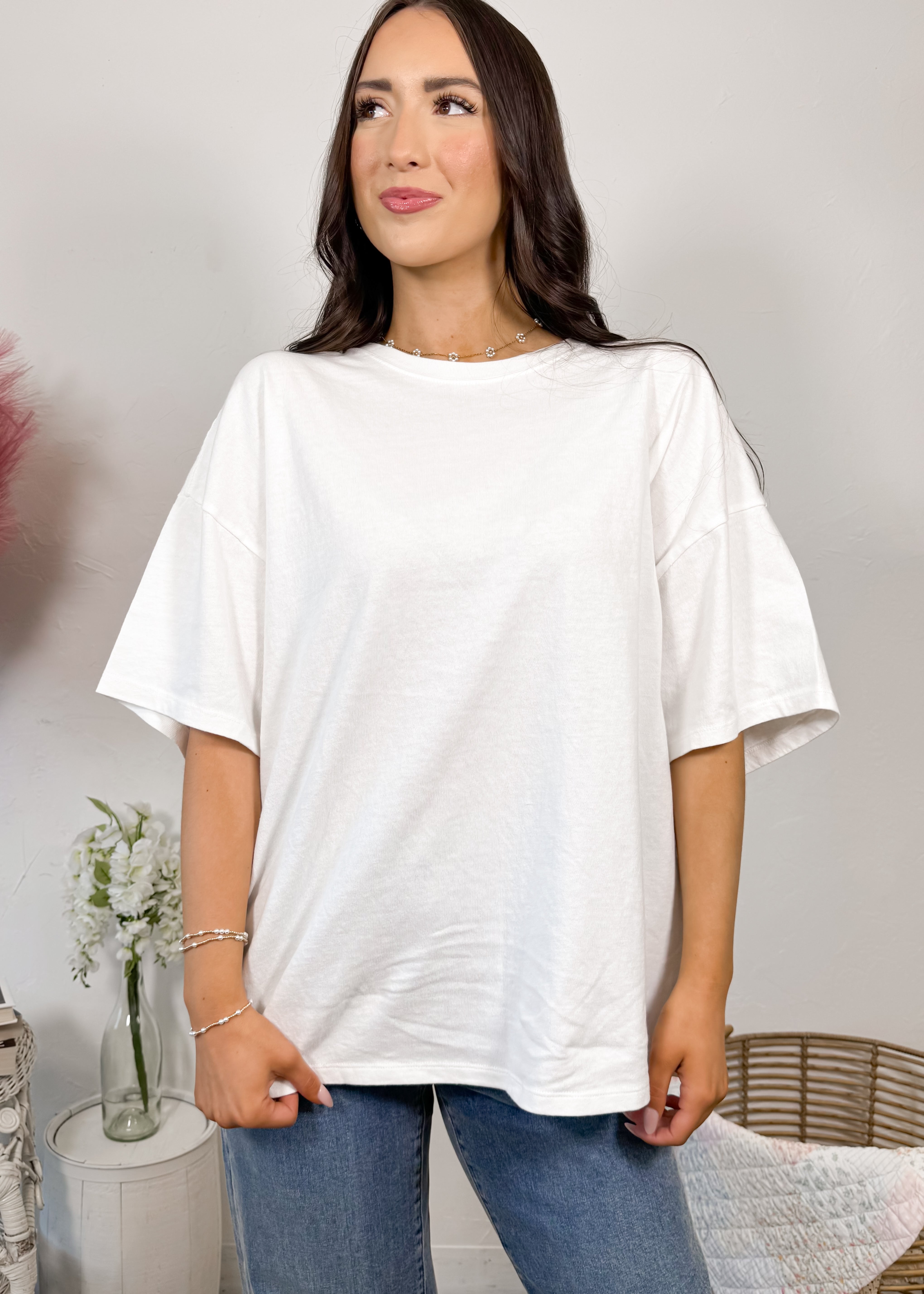 This is the kind of tee you can front tuck with denim, pair with athleisure, or throw on with shorts for busy days on the go. Simple, comfortable, and always cute — the staple every closet needs.
